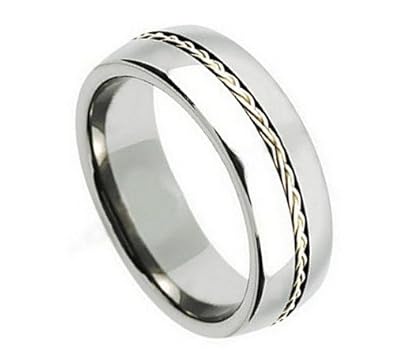 Titanium silver inlay diamond wedding ring
